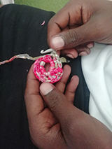 The boys grasped the concept very quickly and in no time had their Plarn cut and started learning how to crochet. The look on their faces was priceless.